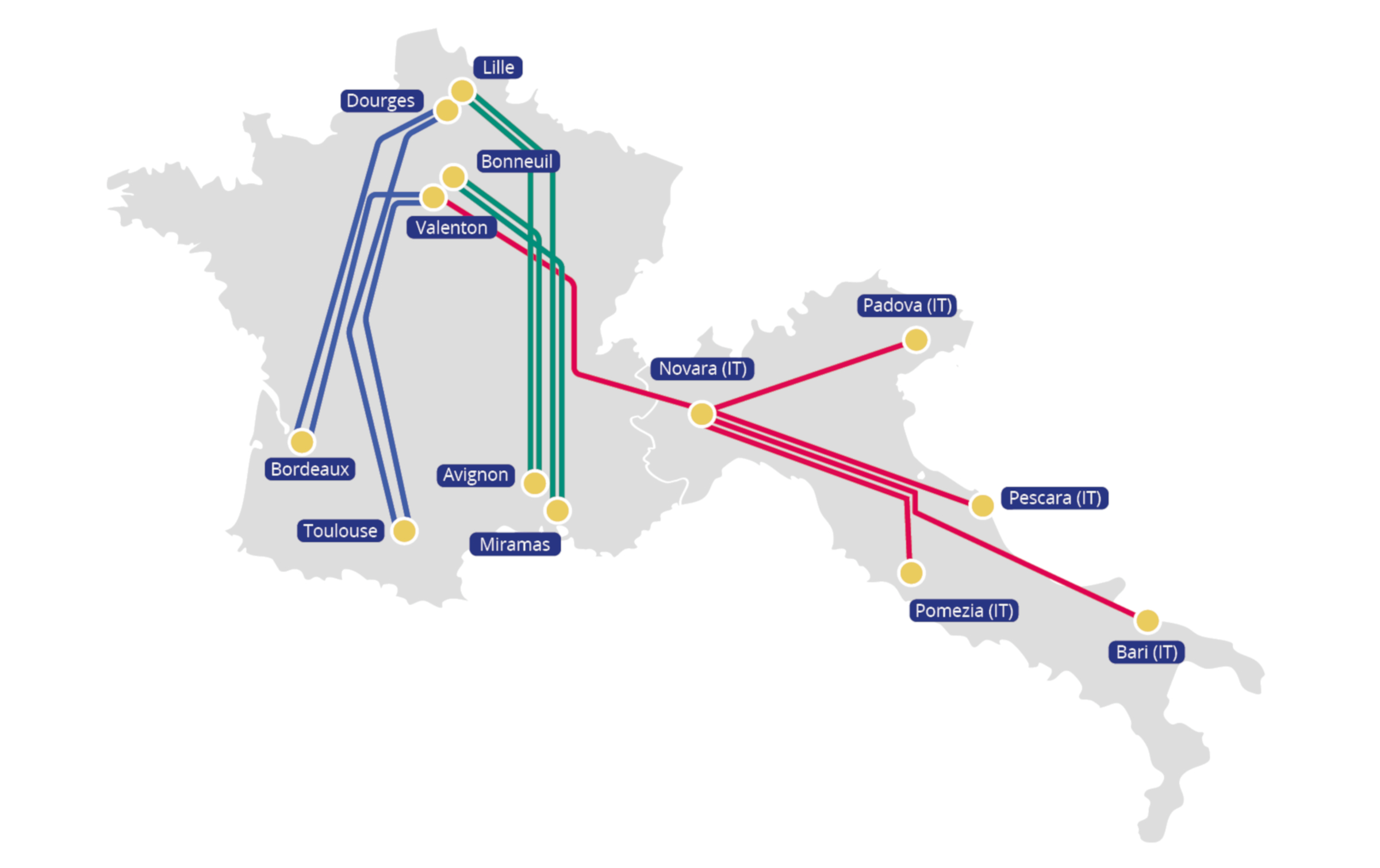 Nos convois sont des trains complets de 1 800 tonnes allant jusqu’à 850m de long entre Paris ↔ Marseille et Paris ↔ Avignon.